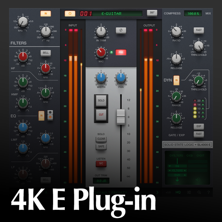 Der Sound des 4000 E lebt in Form von Hardware wie den Revival-Modulen der 4000er- und 500er-Serie sowie in Form von Software mit dem SSL 4K E-Plug-in auf Komponentenebene weiter, einschließlich des legendären dbx 202 "Gold Can" VCA. Das Ergebnis? Eine originalgetreue, harmonisch reiche und ausdrucksstarke Wiedergabe.