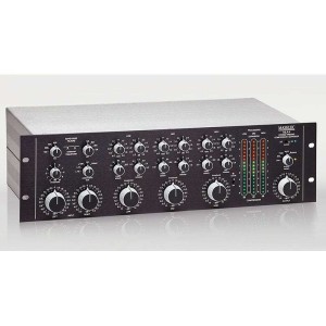 Based around the MLA-3 multiband compressor, the Maselec MLA-4 offers expansion on all bands too, with ratios from 6:1 compression to 1:2 expansion. The link circuits are separate, which means that you can link compression from one frequency band whilst the expansion from the other band is also linked. This unique linking feature makes it possible to create a compression from the bass on the whole program and at the same time expand the mid range or the highs to get a groove with added punch. Hence you can have both compression and expansion simultaneously in a frequency band. This is clearly indicated on the high visibility metering for each band. Over compressed program can be opened up with selected frequency expansion. This has traditionally been difficult because expanders have mainly worked on the full frequency range so with the Maselec MLA-4 fine tuning of the material can be achieved and a little can go a long way to salvaging a crushed mix. The unit is incredibly accurate and easy to recall as all the controls are rotary switches, no potentiometers to be found! This also helps the left and right channels track perfectly, even under heavy processing. Noise, distortion and dynamic range figures are outstanding.