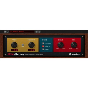 Soundtoys Little AlterBoy 5 is versatile vocal manipulation plug-in, designed to produce a number of widely-used effects such as hard-tuned vocals, robotic vocals and even gender manipulation. An exciting tool for vocal transformation, Little AlterBoy delivers a vast array of tones in a comapct and streamlined plug-in with the essential controls to adjust any voice type imagineable. From simple pitch-shifting, harmonizing vocals through the "mix" knob, changing the singers gender with formant shifting, Little AlterBoy 5, Digital Delivery gives you the keys to instantly unlock the signature sound of todays most popular musical genres.