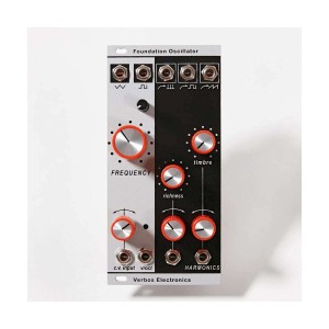 The long awaited small VCO from Verbos Electronics. It is based on the same discrete transistor core as our other oscillators. In addition to outputs for the Square and Triangle waves directly from the core, there is a brand new multiplying waveshaper giving the effect of a VCO in hard sync with the core. Then, three outputs that fade between Sine and Saw, Square and Spike (a Buchla Music Easel classic). In other words, there is a “Richness” control in that multiplies the Saw, Square and Pulse and a “Timbre” control that fades from Sine and the richer multiplied wave on 3 outputs from the same set of controls.