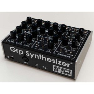 Grp A1 è uno strumento analogico desktop che può essere utilizzato come sintetizzatore compatto da tavolo o per completare un sistema Eurorack. Il sintetizzatore monofonico Grp A1 può essere usato come strumento musicale autonomo o può essere impiegato per filtrare segnali esterni all’interno del circuito risonante Low Pass 18dB VCF. La presenza di tre segnali interni (VCO, SUB e NOISE) garantisce potenza timbrica e facilità di utilizzo. Con i due Low Frequency Oscillator - LFO (il primo, integra un Sample & Hold S&H) e con l’Envelope Generator ADSR, è possibile scolpire il comportamento di modulazione ciclica o transiente. É possibile ottenere articolazioni indipendenti di VCF e VCA scegliendo per quest’ultimo uno dei comportamenti FILTER EG, GATE + REL, HOLD. Lo strumento può essere alimentato tramite un cavo USB di tipo C collegato ad un qualsiasi Power USB 2,5A Inoltre può essere estratto dal proprio cabinet per essere installato con semplicità in un qualsiasi sistema modulare EuroRack; è possibile alimentarlo usando i normali flat cable in dotazione ai sistemi EuroRack.