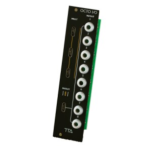 Las tomas polifónicas se conectan con cables de conexión Polytip. Octo I/O es completamente pasivo y bidireccional, por lo que puede utilizarse para recibir o enviar señales en cualquier dirección. Puede utilizarse para audio CV y Gate.