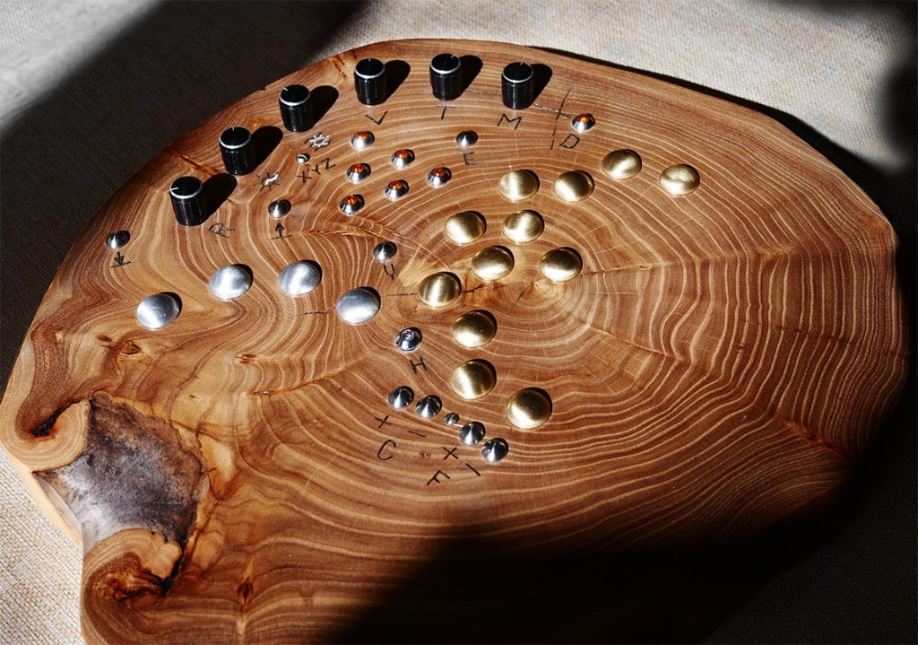 Non è un’aggiunta creativa, ma una parte fondamentale dello strumento. Il suono può essere modulato semplicemente inclinando, muovendo o oscillando il corpo del synth.