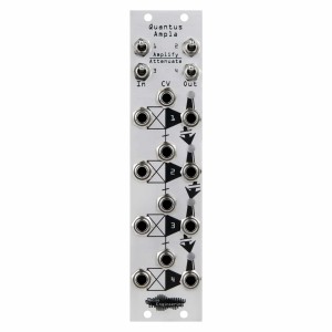 Quantus Ampla è un VCA compatto a quattro canali. Ma non è solo un VCA qualsiasi: con alcune opzioni uniche di normalizzazione, mixaggio e CV e un po' di stile NE, puoi usarlo per un sacco di cose. Dall'alto, ogni canale ha due modalità indipendenti: Amplify, che fornisce una normale risposta VCA, e Attenuate, che fa chiudere i VCA invece di aprirsi in risposta a CV positivi. Gli ingressi CV sono normalizzati circolarmente, quindi puoi facilmente creare effetti ducking su più voci, dissolvenze di volume e transizioni, il tutto con patch minime. Inoltre, le uscite si mixano, quindi possono essere due mixer a due canali, un mixer a 3 canali più un VCA, un mixer a 4 canali ... mescolare e abbinare al contenuto del tuo cuore. Abbiamo già detto che è accoppiato in CC? Sì, puoi usarlo anche per elaborare i segnali CV.
