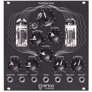 Erica Synths Fusion VCO is special kind of VCO – it fuses great tuning of digital VCO with warm, unique sound of vacuum tubes that work in suboscillator circuit. Two double triodes in bistable latch connection act as suboscillators: -1 and -2 octaves with plenty of mixing opportunities for amazing sonic results. External audio signal can replace internal VCO. If you wish to go really low frequencies and have a sound that sets your modular system apart from mass – this is exactly module, you need!