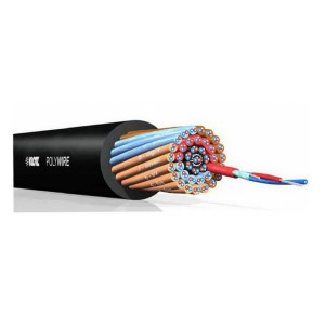 Studio Multicore PolyWIRE Diameter: 17.0 mm - numbered and colour coded pair jackets - ultra flexible Conductor: stranded bare copper, 7 x 0.20 mm Cross section: 0.22 mm² Insulation: PE red & blue Pair Shielding: stranded tinned copper drain wire AL/PETP foil Pair Jacket: PVC, color coded and numbered in steps of 8 pairs Overall Jacket: PVC, soft, matt, black