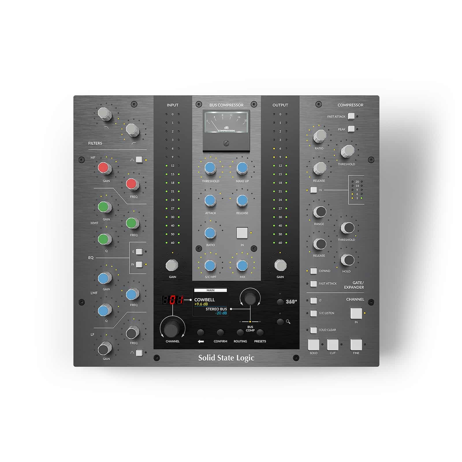 - Authentic moving-coil Bus Compressor gain reduction meter, driven digitally from the SSL Native Bus Compressor plug-ins