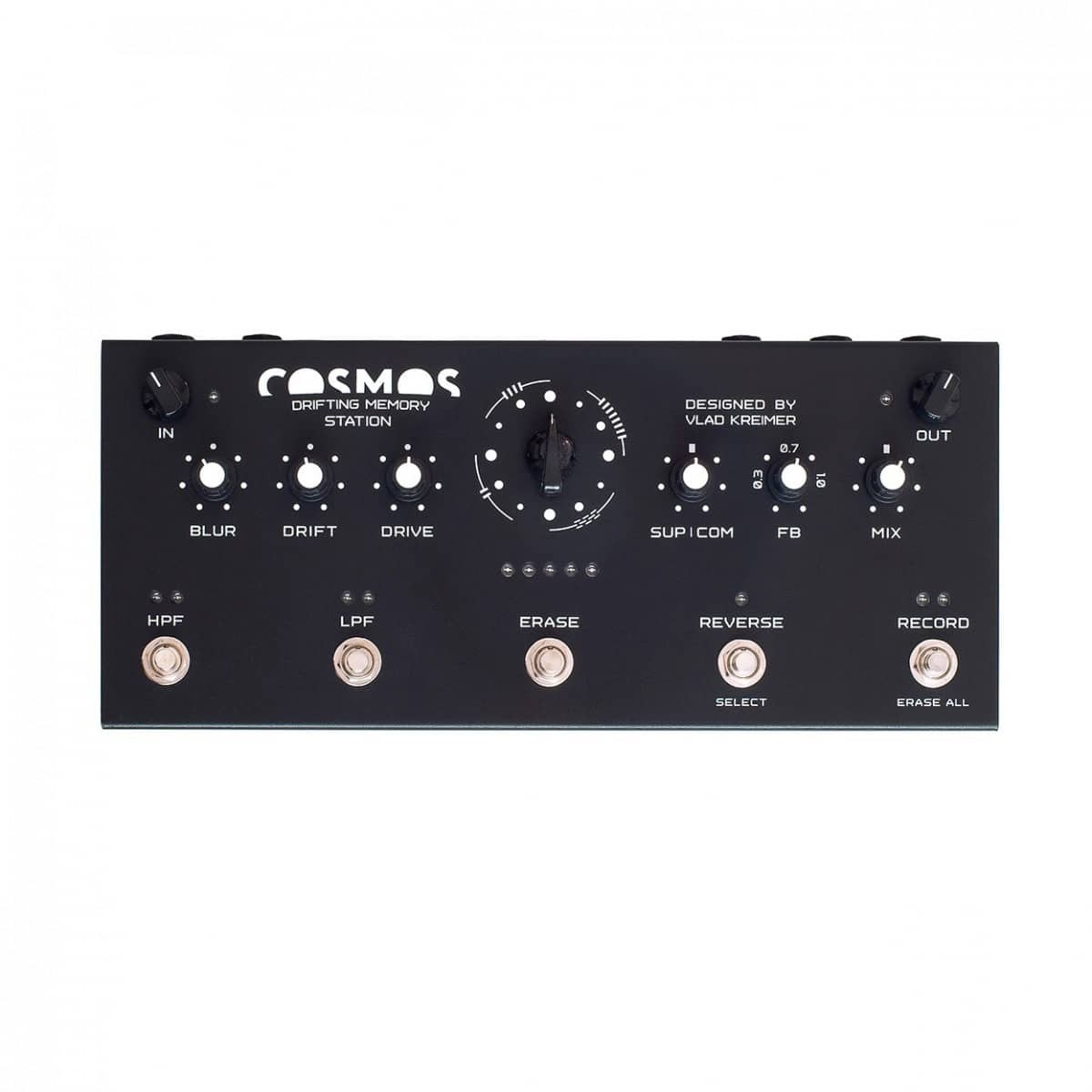 The COSMOS is not just a looper, but a true "Drifting Memory Station" designed to induce meditative states through music. Its design and the soundscapes it generates are designed to evoke feelings of limitless space, fluidity and harmony. Unlike traditional loopers, the COSMOS records sounds into a memory array that recombines and evolves them into a continuous stream, without the annoying repetitive loop. It is the perfect tool for ambient musicians, sound designers, and performers who want to create unique, ever-evolving soundscapes.
