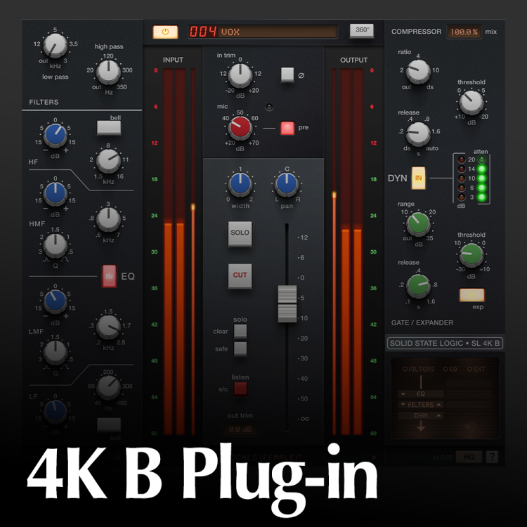 Chi desidera ritrovare quella firma sonora può farlo attraverso il 4K B Channel Strip plug-in, emulazione fedele dell’originale. Dalla saturazione armonica del preamp al comportamento dinamico del VCA, tutto è stato ricreato per portare quel suono vintage nei progetti moderni.