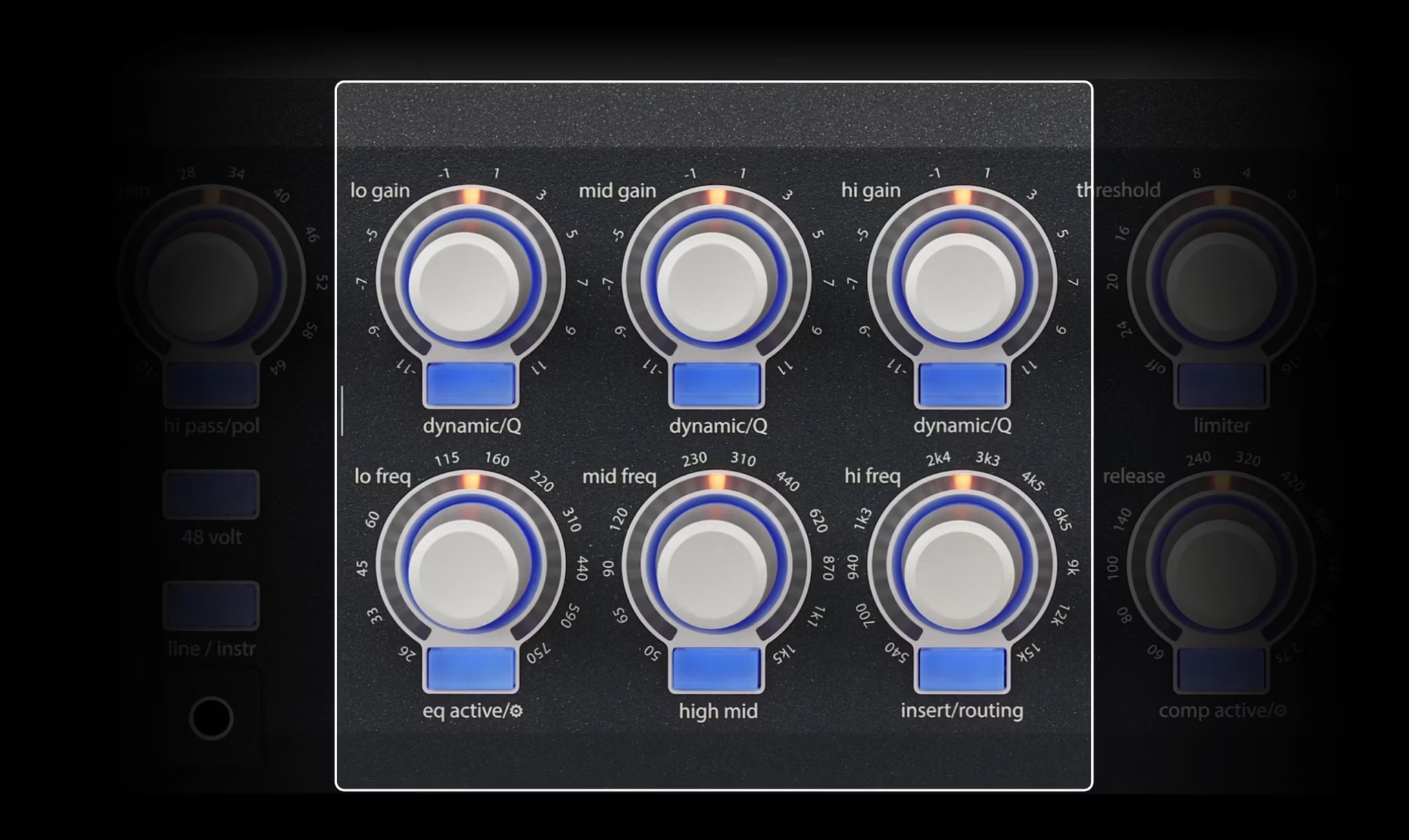Questo significa che l’intervento non deve essere sempre “statico”: l’EQ può reagire solo quando la banda diventa problematica, come faresti con un dynamic EQ in plug-in, ma con musicalità e comportamento hardware. Risultato: interventi più trasparenti e suoni più “finiti” già in tracking.