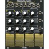 Pressure Points is a controller module, an analog sequencer that is played by hand. Touching the gold plated copper wires (aka Touch Plates), you become part of the circuit, generating a gate signal (Gate OUT), a control signal proportional to the amount of pressure applied (Press OUT) and the 3 Tuned Voltages for the activated Stage. – The Gate signals may be used to turn portions of a patch ON/ OFF, generate Timing Events within a patch or to Trigger a Function Generator such as MATHS – The PRESSure signals may be used to add expression to a patch by varying Pitch or Timbre in real-time, based upon the artist’s input – The Tuned Voltages may be used to play the Pitch of a sound in a traditional melodic fashion, Program Chords or Timbral shifts (aka Presets) – Up to 6 may be CHAINed together (using CHAIN Cable), to create controllers of varying size and complexity – All outputs are capable of driving a passive 4 way mult without loading effects (no buffered mult needed) – Expansion port allows for sequential control via the BRAINS expander module – Pairs well with MATHS