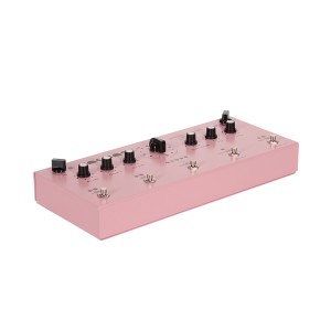 COSMOS is a drifting memory station designed to work with meditative states through music. The design of the controls, functions, and generated soundscapes are intended to evoke, in both the performer and listener, states and experiences inherent in meditation, such as limitless space, fluidity, spontaneous development, presence, the ability to listen, tranquility, and the experience of subtle harmony and happiness enveloping the whole world. Functionally, COSMOS is a large sound memory array in which recorded sounds undergo continuous recombination, spontaneously generating an ever-evolving soundscape. This is achieved in three ways: a mathematical shift based on the relationships between large prime numbers (the sizes of all delay lines are different prime numbers), asynchronous LFO operation, and modulation with a slowly changing chaotic signal. As a result, it allows endless layering and processing of various sounds, like a looper, but without an intrusive, repetitive loop. COSMOS generates rich, fluid and ever-changing soundscapes that are perfect for ambient music. Using COSMOS, you can play an entire meditative solo concert while in a spontaneous flow and without using prepared studio sequences, backing tracks, and other things that cannot be a reflection of the "here and now."