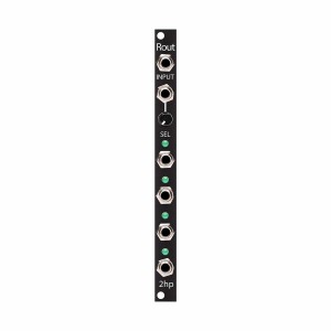 Rout is a voltage controlled gate switch. The signal present at the input can be sent to one of four outputs. Great for splitting a pattern across multiple voices or creating variations in a patch with a single gate source, Rout is a powerful addition to any rack's rhythm section.