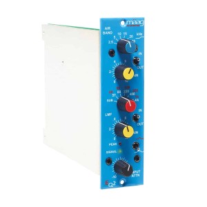 The Maag Audio EQ2-500 is a 2-band EQ module designed for single slot in 500 Series format, based on the sound philosophy of the famous EQ4M. It offers precise mid-bass control and the unmistakable Air Band® to enhance brilliance without harshness, while maintaining transparency and musical response.